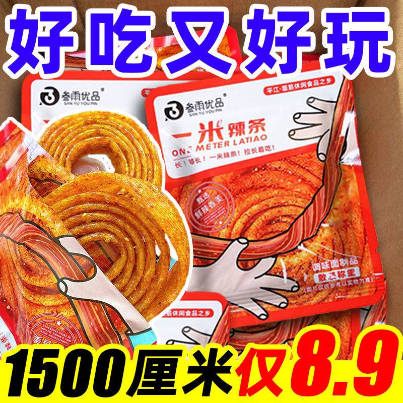 【超长辣条】叁雨优品一米辣条童年老式辣条小面筋网红休闲小零食