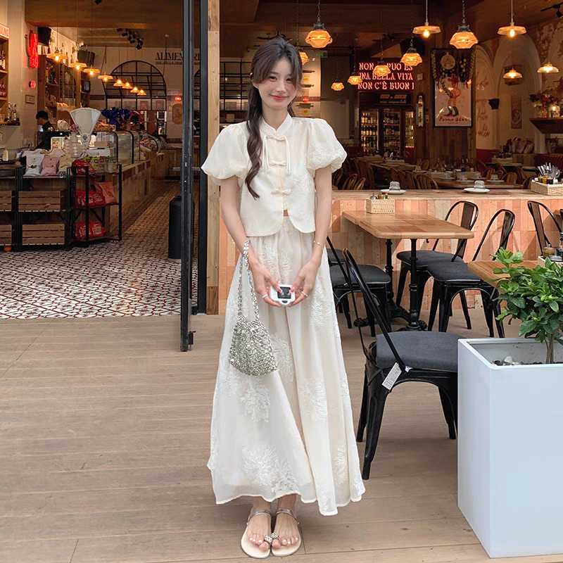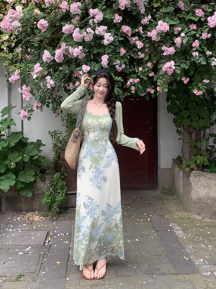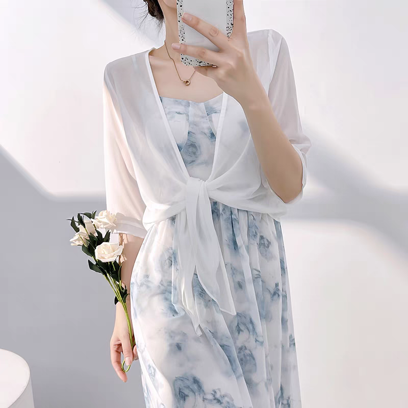 【花开半夏】新中式复古提花连衣裙女夏开衫吊带裙两件套