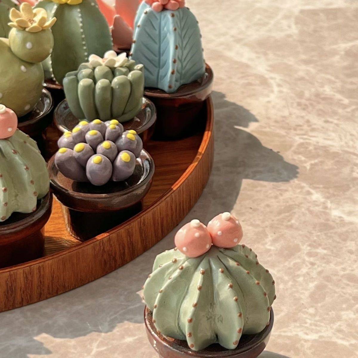 景德镇创意可爱手工陶瓷盆栽仿真仙人掌多肉迷你趣味桌面装饰摆件
