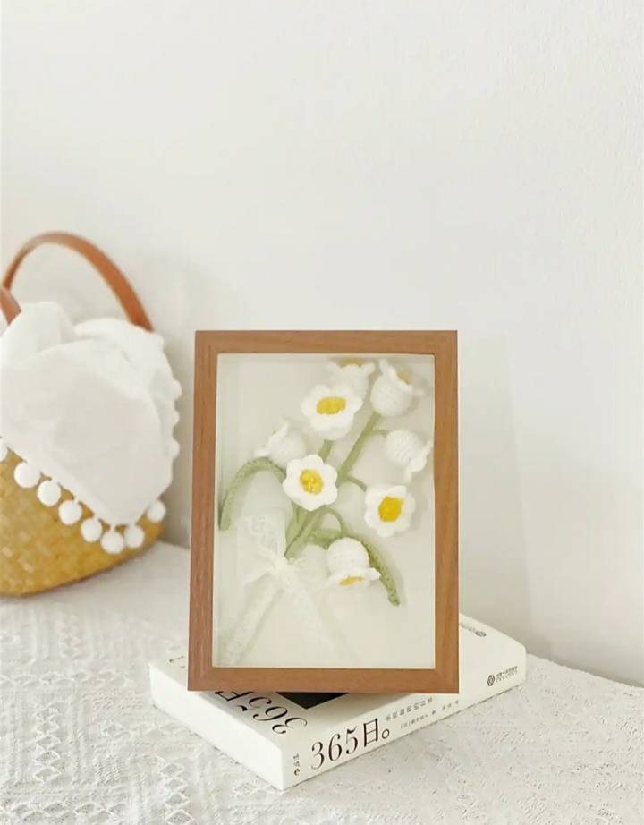 毛线编织花束针织diy相框花朵成品自作摆件