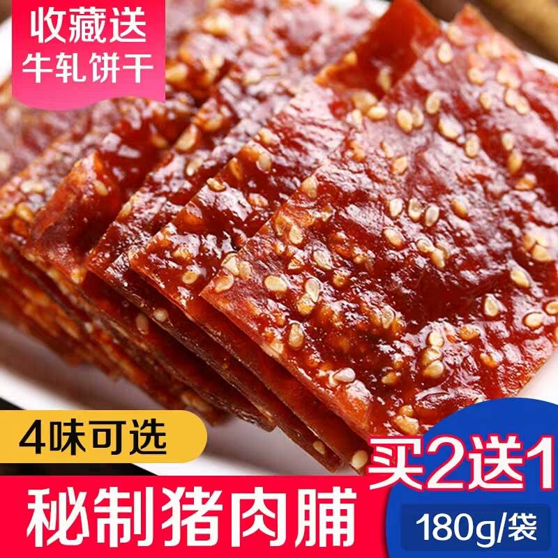 靖江猪肉脯4种口味买二送一纯后腿瘦肉猪肉干特产网红小零食180克