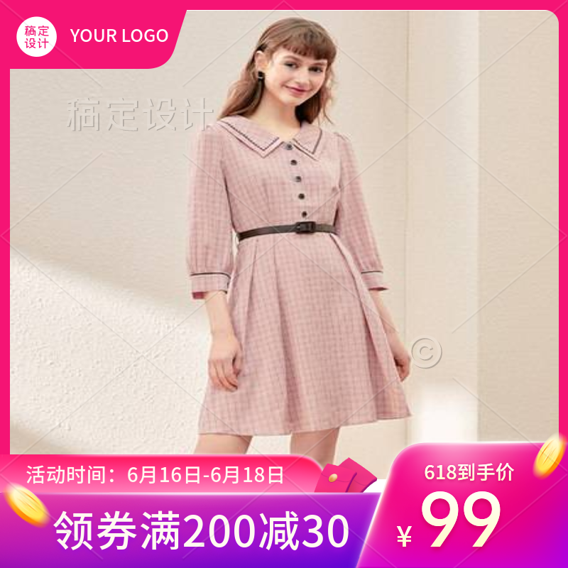 包邮泡泡袖格子连衣裙2021年春款女收腰显瘦法式娃娃领九分袖裙子