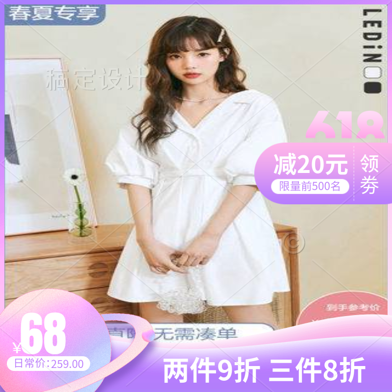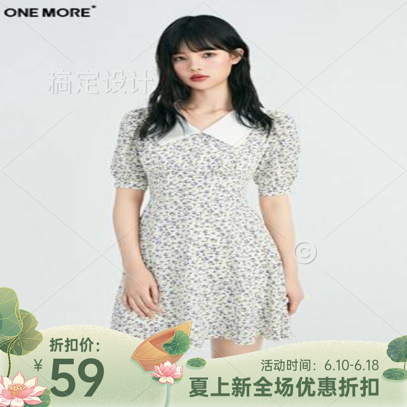 欧货时尚洋气娃娃领连衣裙女2021年夏季新款 气质收腰泡泡袖a字裙