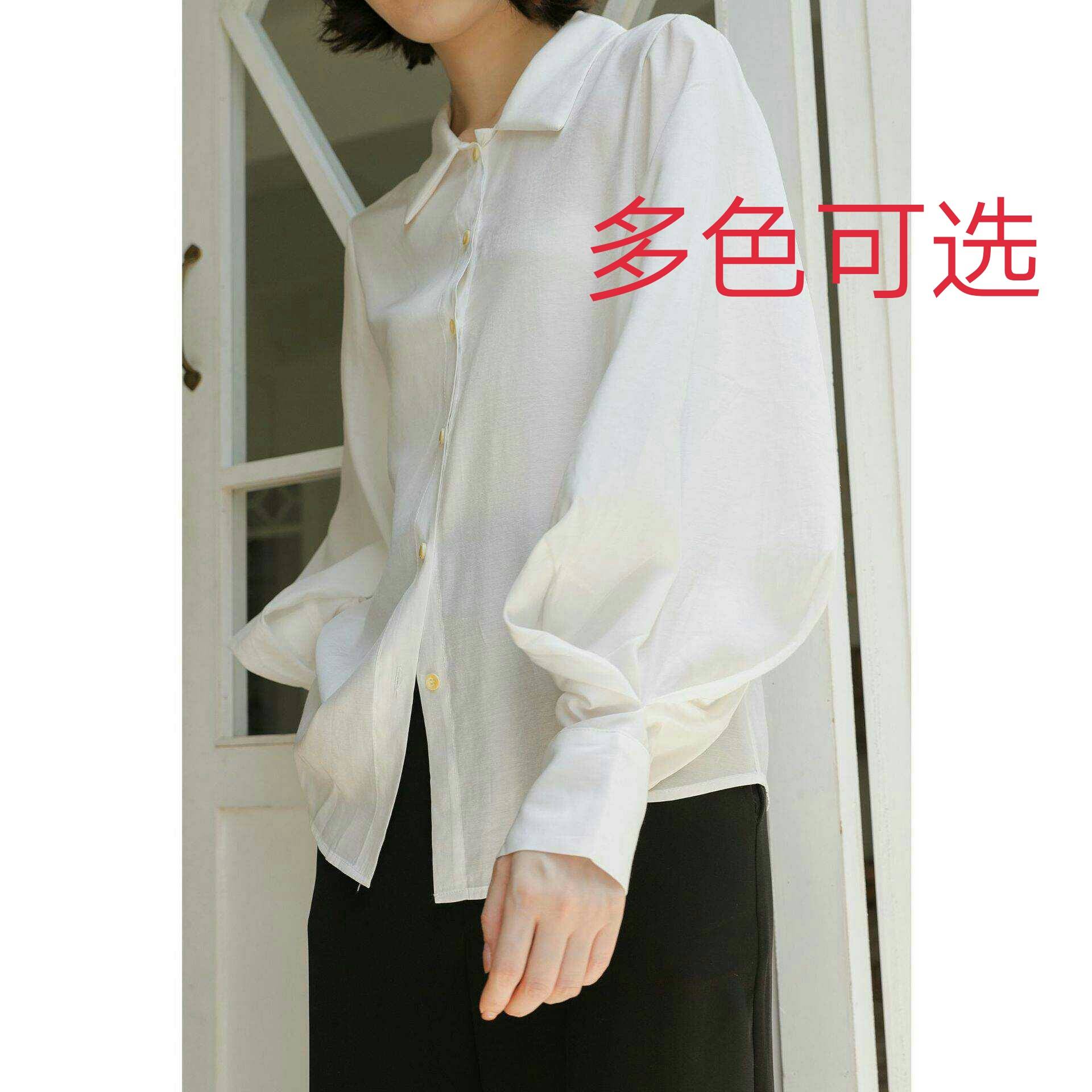 初秋新款灯笼袖上衣宫廷风长袖衬衫女翻领衬衣OL风2270
