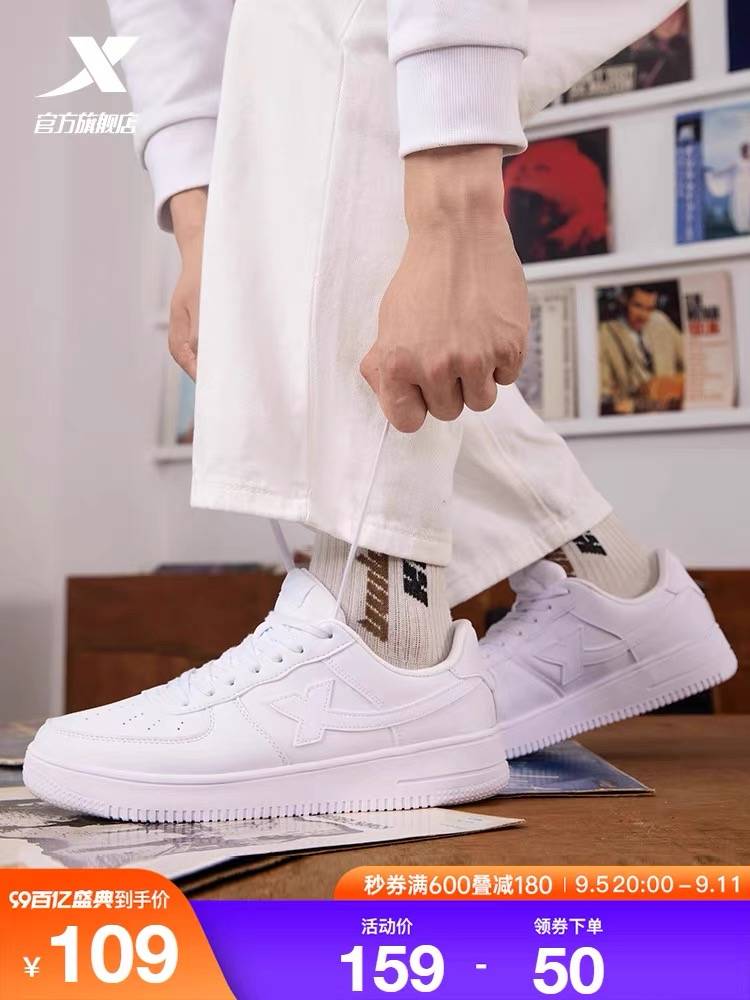 特步空军一号板鞋男鞋秋季休闲鞋情侣运动鞋女鞋子百搭厚底小白鞋