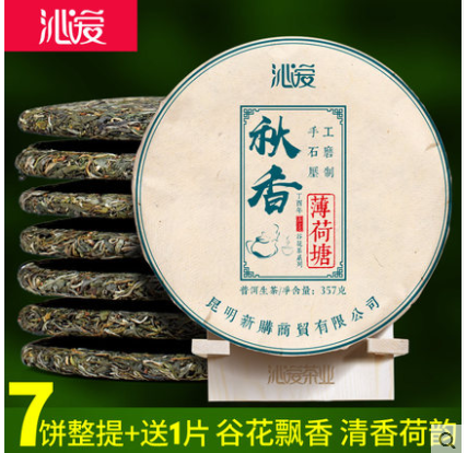 7片整提购2499克+送1片 沁爱 古300薄荷塘 谷花普洱茶 七子饼生茶