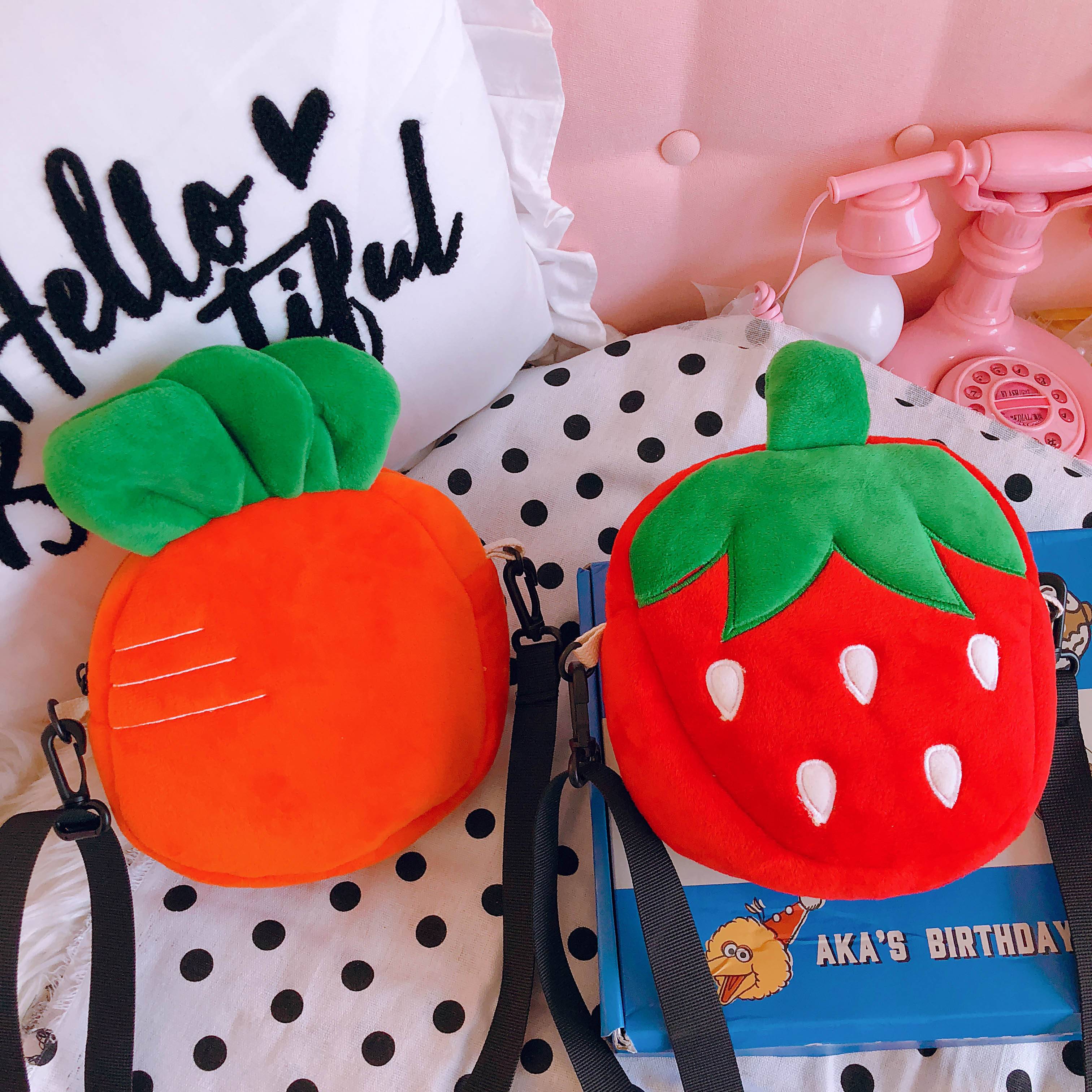 少女可爱草莓毛绒包包女冬季软妹胡萝卜日系百搭斜挎包