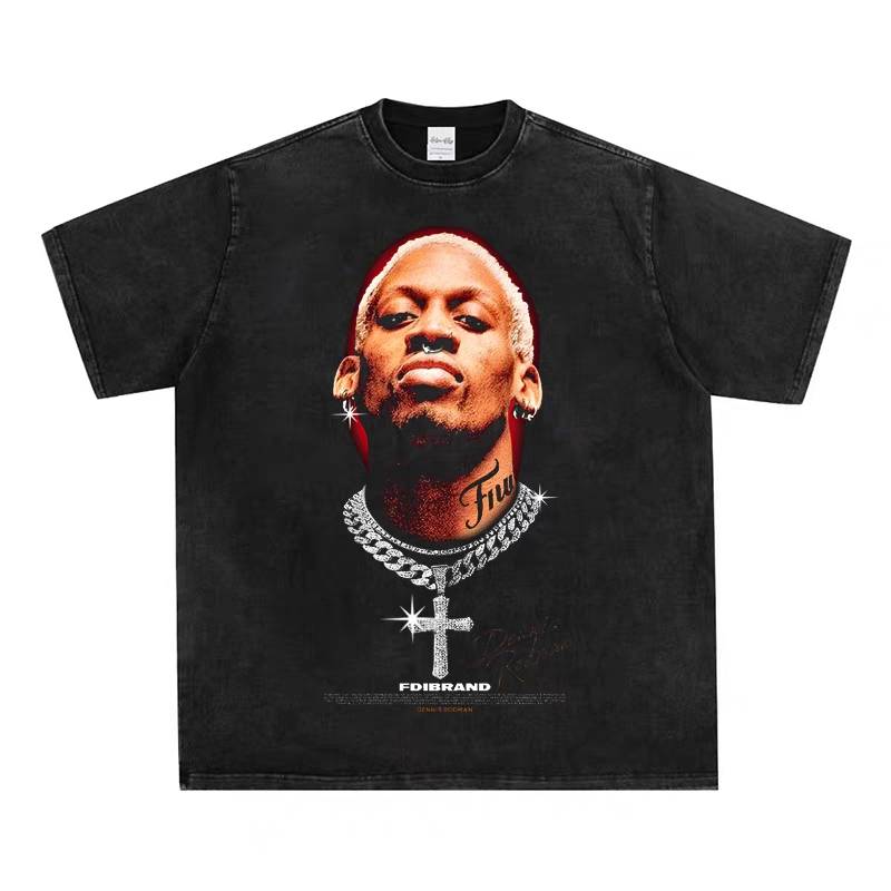 Rodman 美式小领口水洗做旧复古重磅纯棉罗德曼大虫 ins 短袖篮球 T 恤