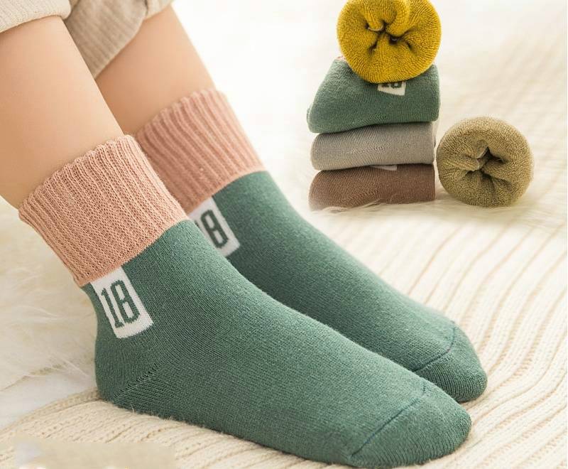 儿童袜子纯棉秋冬季加绒加厚毛圈袜男童女童中筒袜宝宝毛巾袜冬天