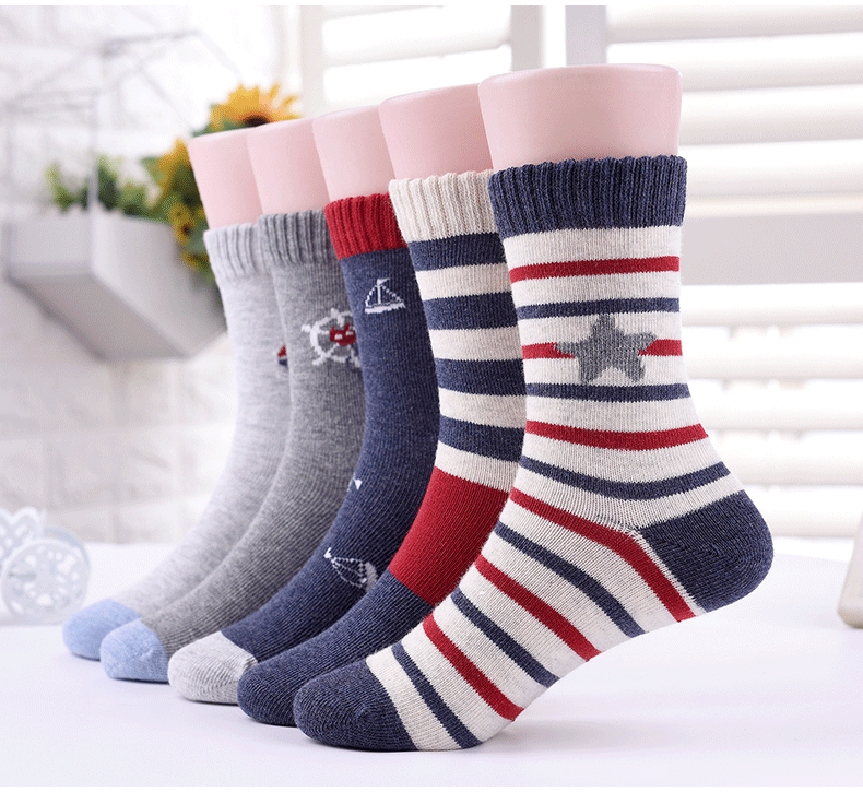 男童袜子秋冬款中大童男孩纯棉全棉儿童秋冬季加厚中筒