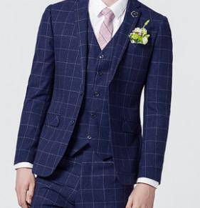 西服套装男士三件套新郎结婚礼服英伦薄款修身格子婚礼西装正装