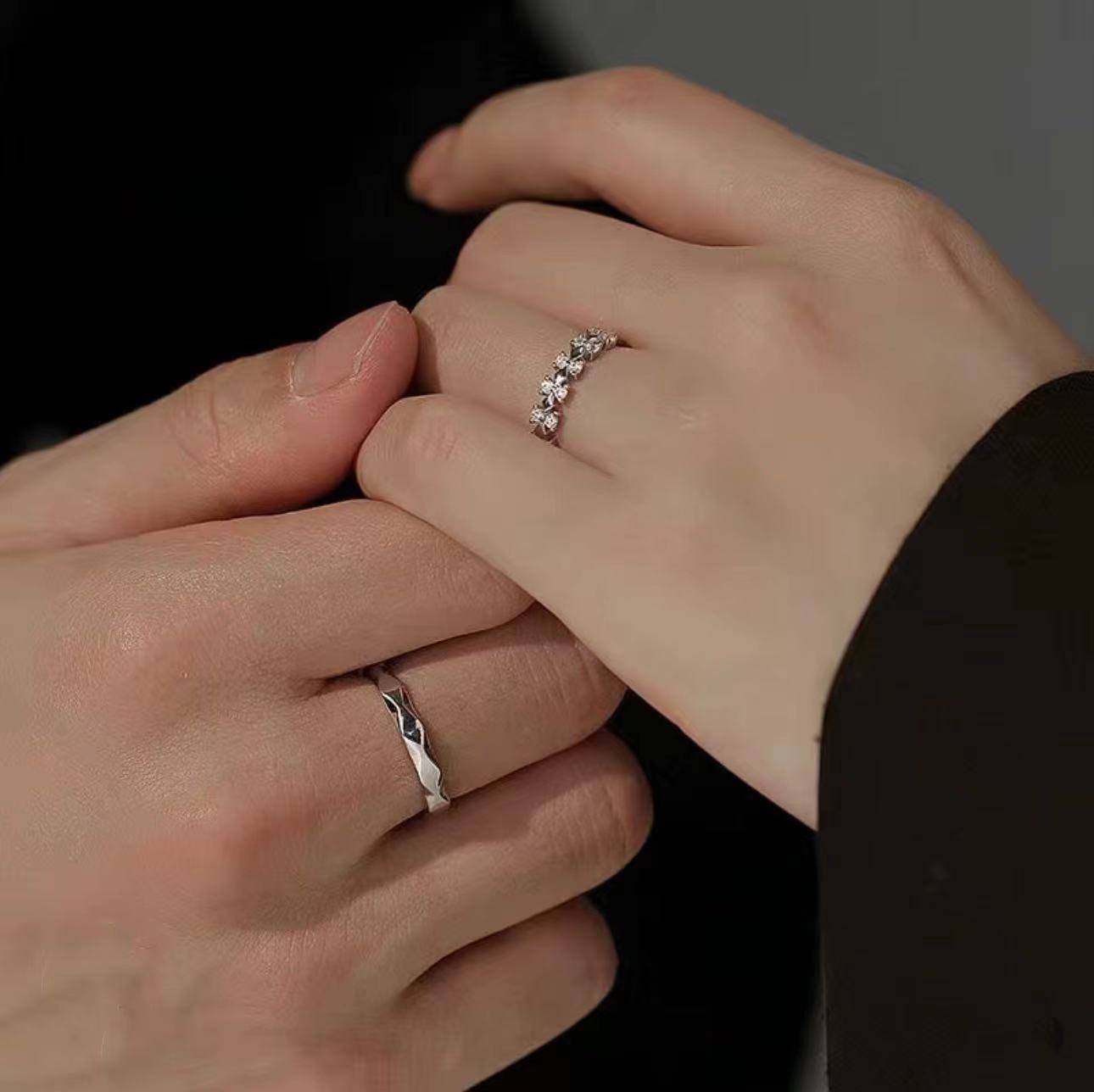 S925银 520结婚情侣对戒 韩版男女开口戒指 七夕纪念日礼物