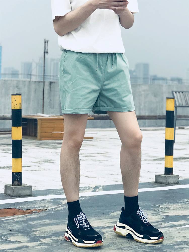 原创三分裤男 情侣运动短裤 夏季修身超短裤 棉麻休闲潮沙滩裤