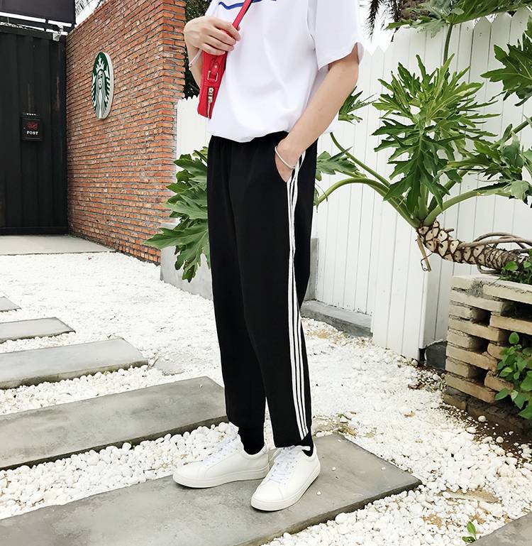 运动宽松九分裤 无几男装 港风男女黑白竖条纹运动裤休闲9分裤 潮