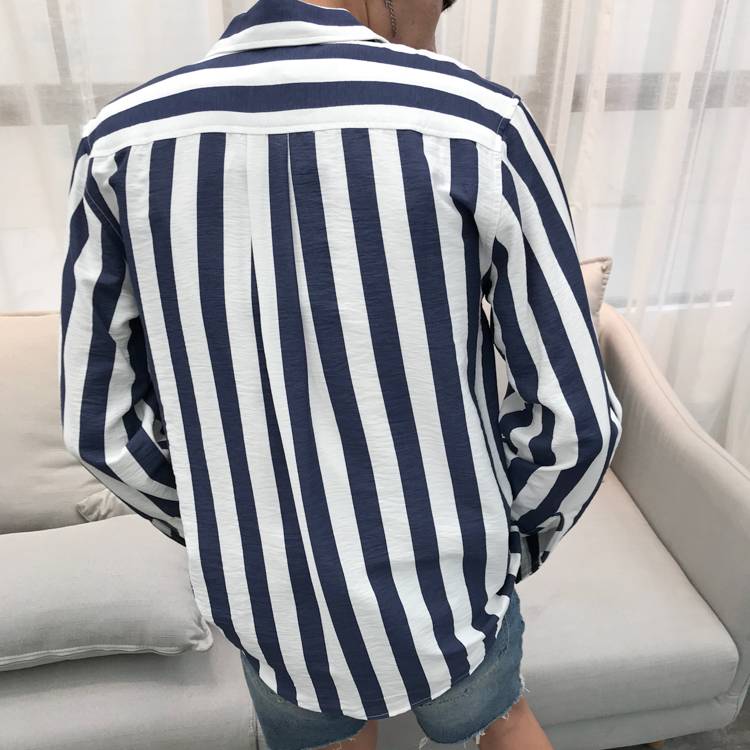 男港风韩版潮流宽松宽条纹长袖衬衫男生ulzzang原宿休闲衬衣