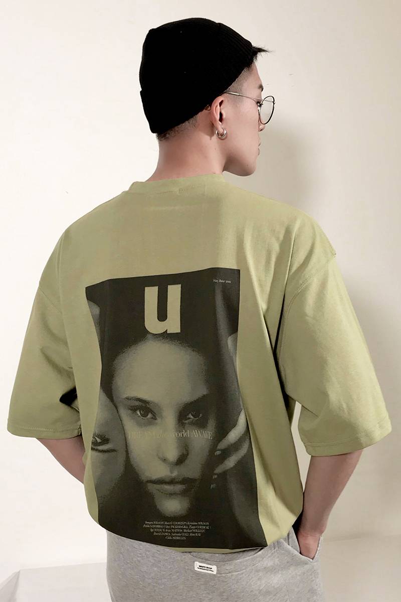 男装嘻哈t恤男圆领后背人物印花宽松五分短袖潮流oversize