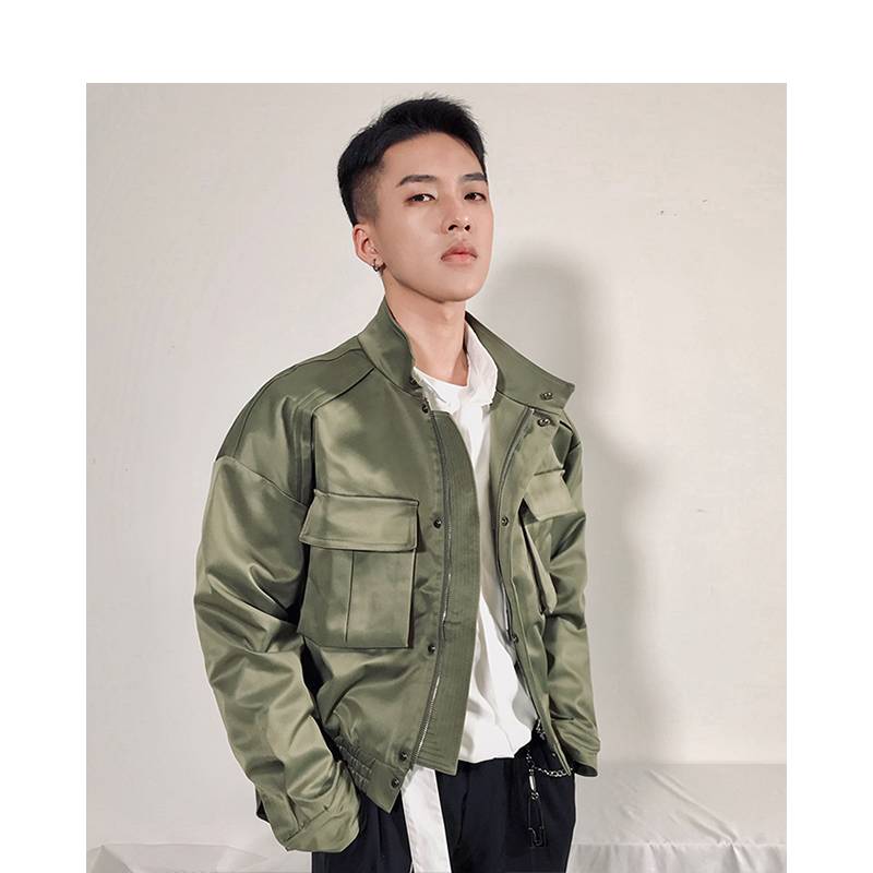 春港风立领短款宽松外套 玫瑰刺绣大口袋廓形夹克外套 潮