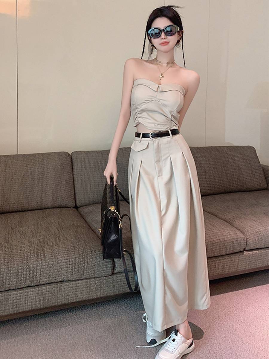 2023抹胸外穿套装女连衣裙子长裙高腰a字显瘦两件套性感纯欲辣妹