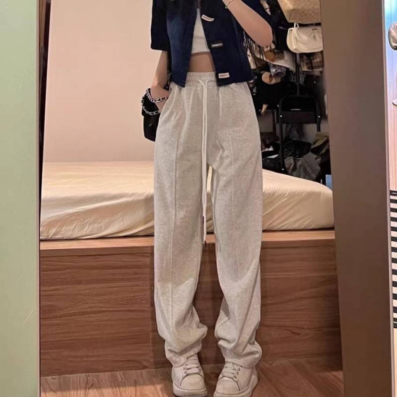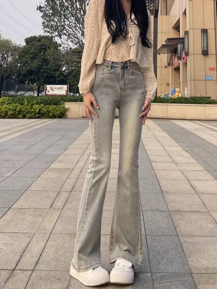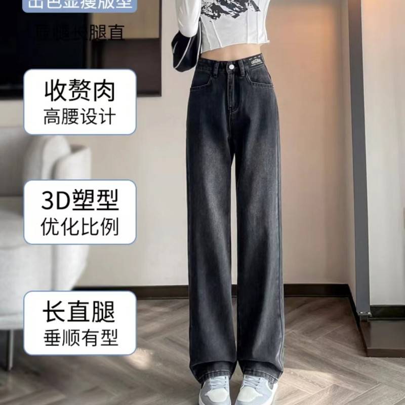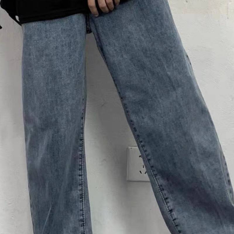 2022春夏新款批发松紧腰高腰牛仔裤女宽松直筒显瘦阔腿长裤