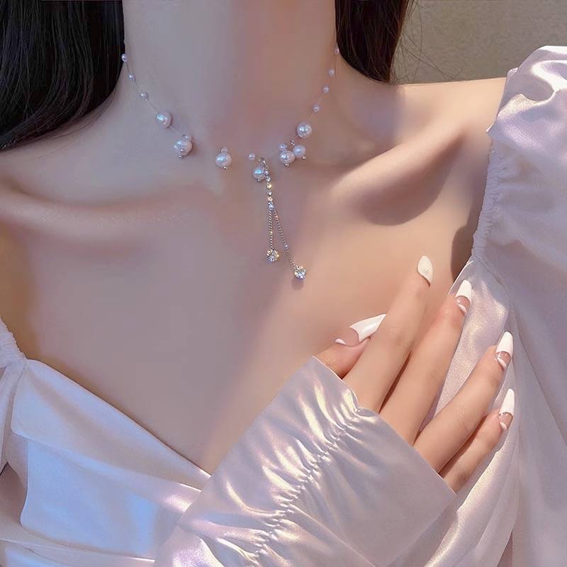 人鱼的眼泪天然珍珠闪钻流苏项链女2023年新款轻奢小众短款颈链