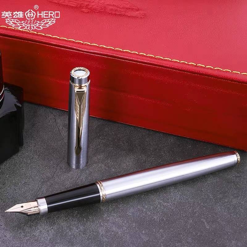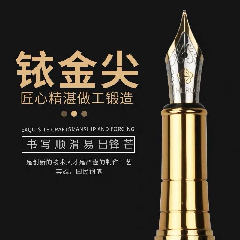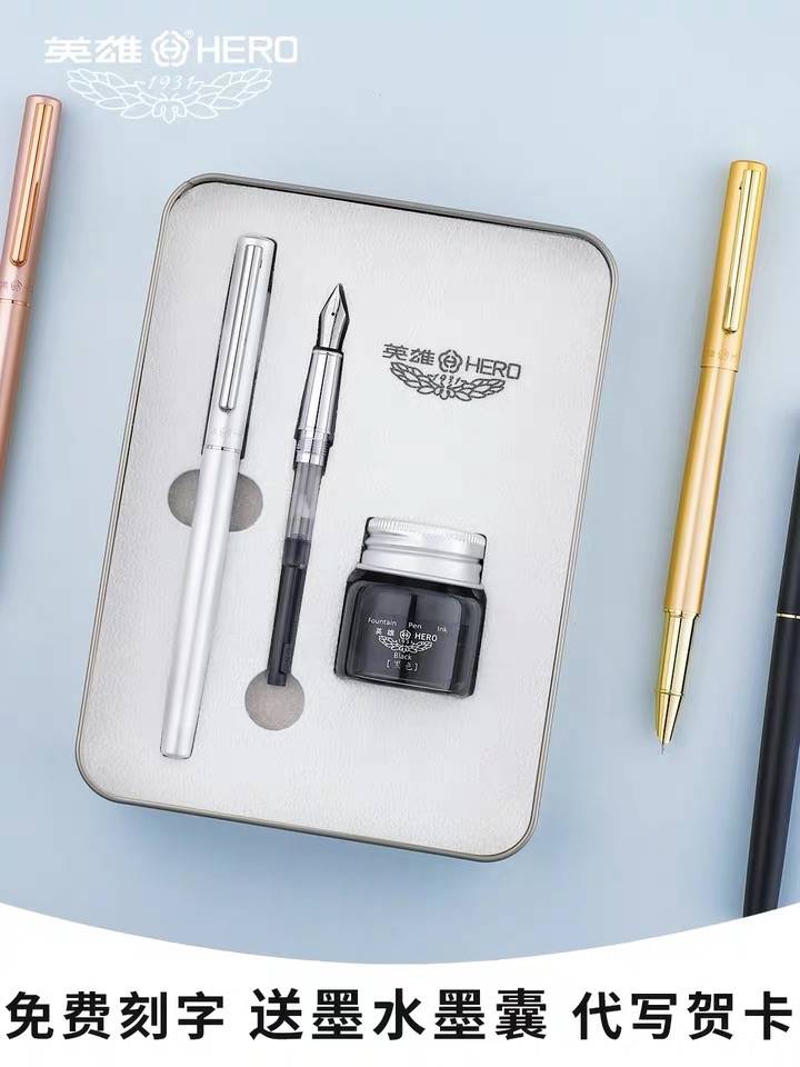 英雄钢笔hero官方旗舰店法国设计无尽探升男女学生练字专用旋转笔帽商务成人高档书法笔送礼定制logo免费刻字