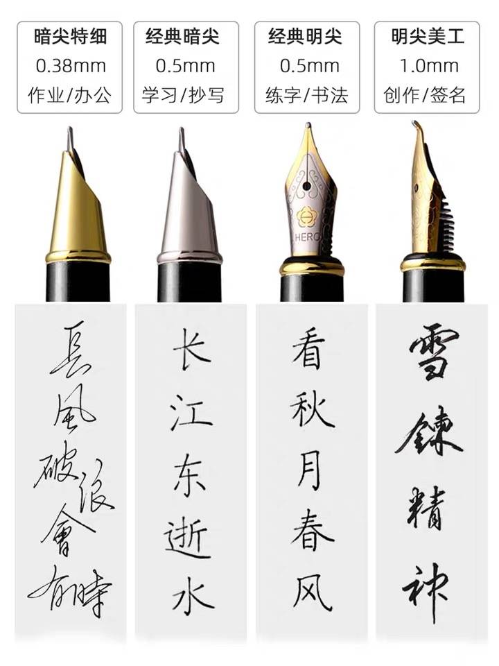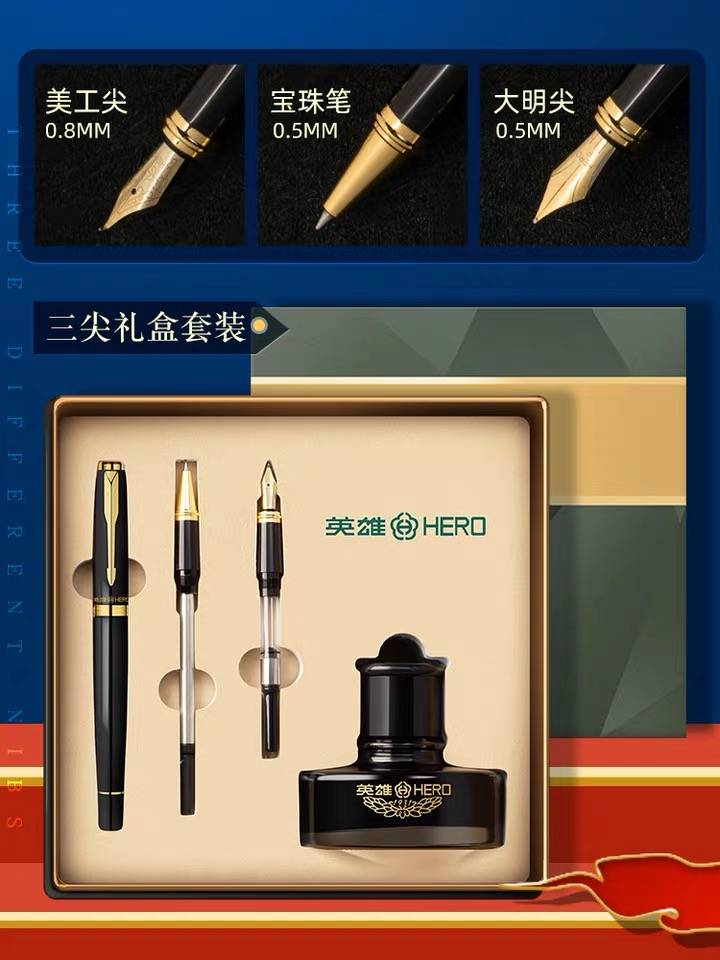 HERO/英雄钢笔官方正品旗舰店男女孩小学生练字专用学生礼物美工弯尖墨囊钢笔套装成人商务定制logo免费刻字