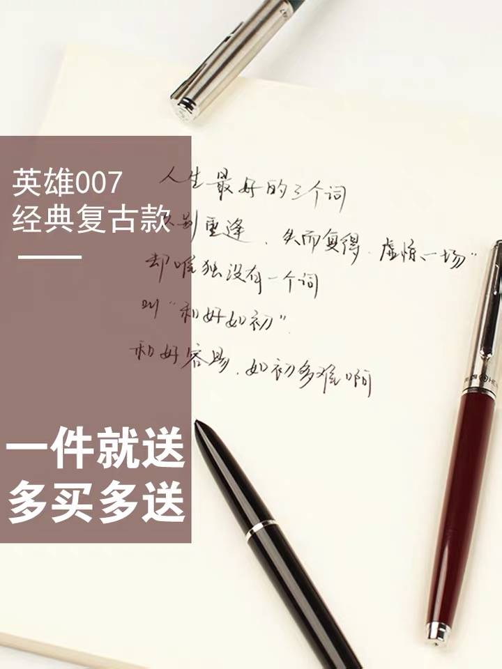 【第4支0元】英雄钢笔官方旗舰店官复古吸墨经典老款007 0.38mm极细包暗尖英雄牌男女小学生三四五六年级专用