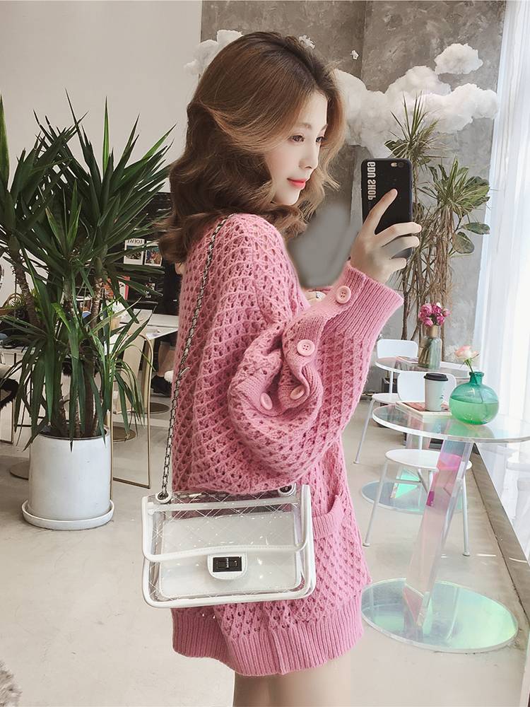 2018秋装新款慵懒风镂空蝙蝠袖毛衣针织衫外套女chic宽松休闲开衫