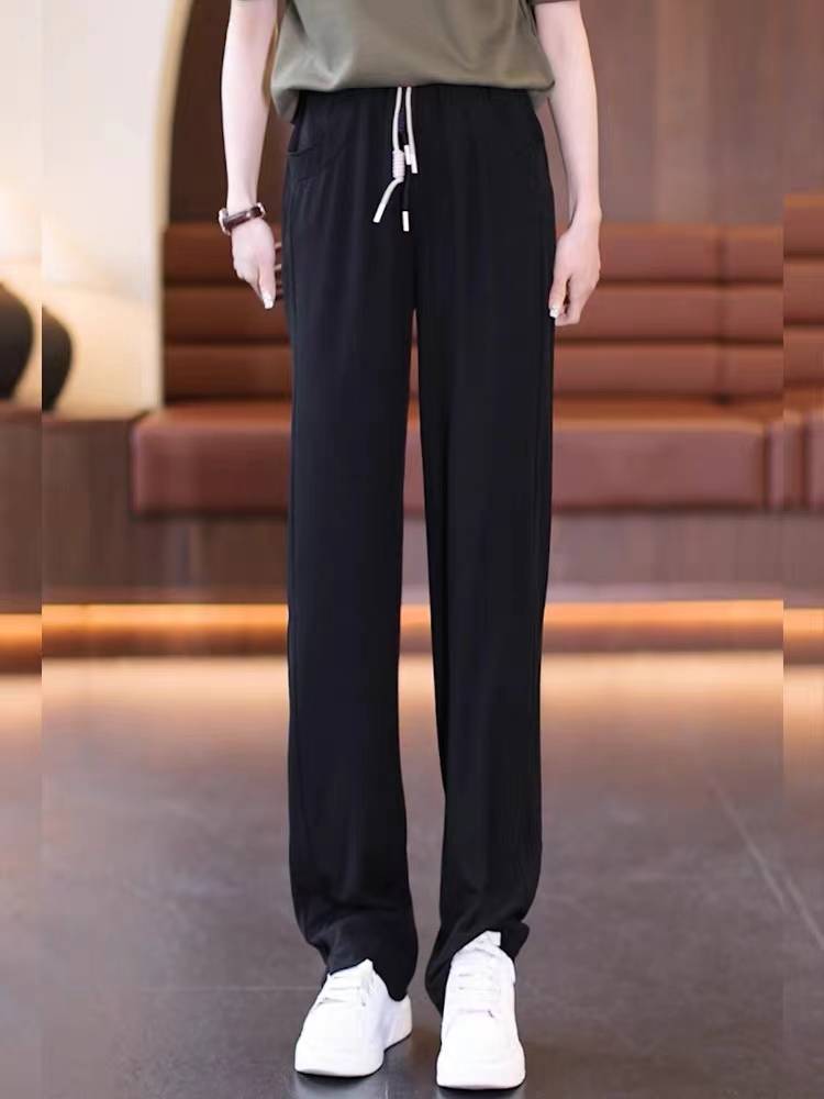 窄版阔腿裤2023新款休闲裤女春夏高腰垂感冰丝宽松显瘦弹力直筒裤