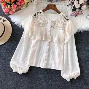 女童森系绣花娃娃领衬衫春季新款宝宝复古提花针织衫毛衣外套