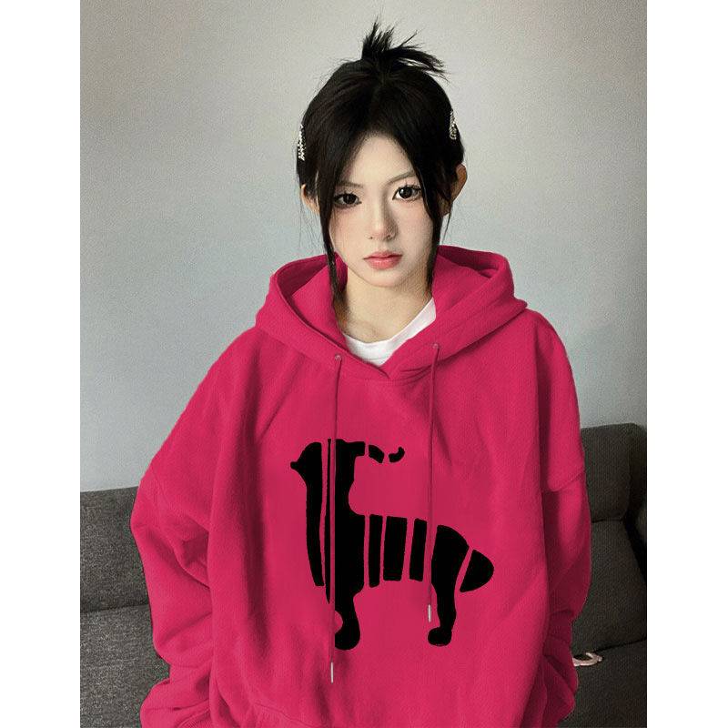 高级感超好看火龙果色连帽卫衣女秋季vintage潮牌宽松上衣外套ins