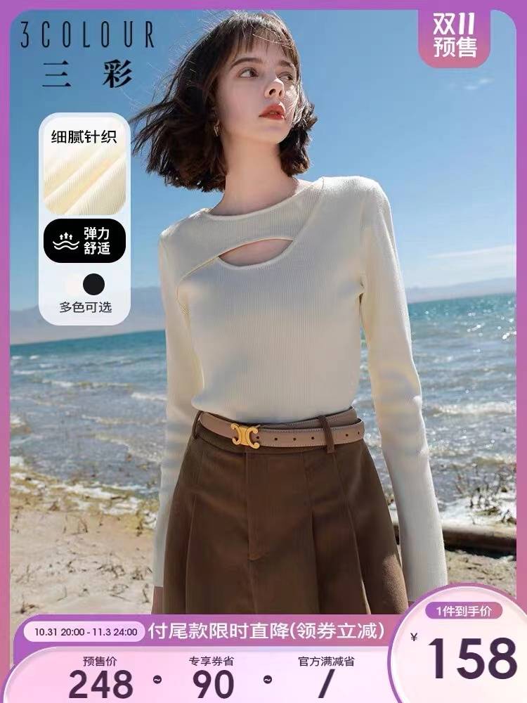 早秋针织衫女薄款洋气长袖修身抽绳套头毛衣春2019打底衫女装