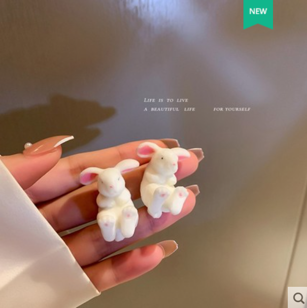 925银针亚克力小白兔耳钉女可爱简约卡通耳环清新甜美个性耳饰品