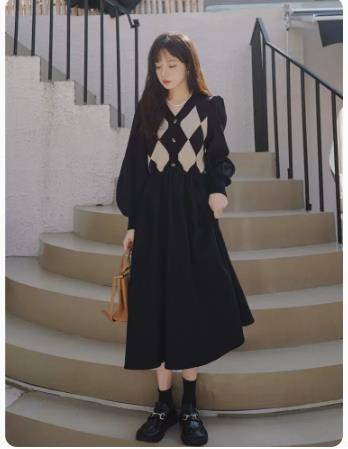 法式复古赫本小香风黑色针织连衣裙2022新款春小众设计裙子女秋冬