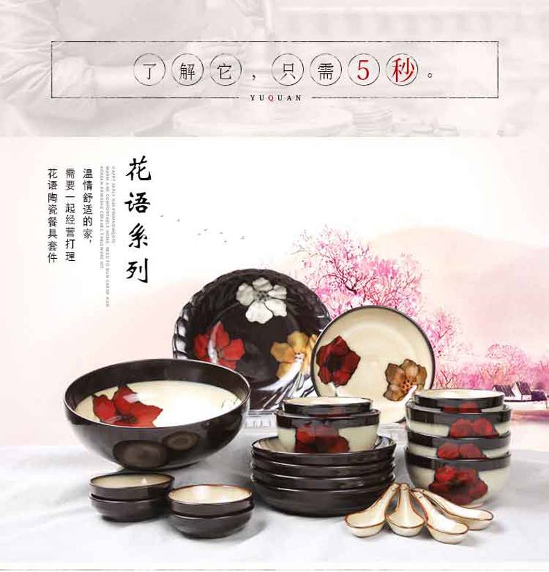 花语20头中式炻器碗碟餐具套装 韩式陶瓷碗盘釉下彩家用