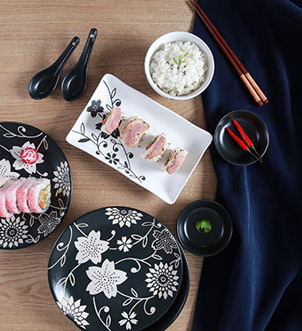 樱花物语日式餐具套装家用碗碟陶瓷碗盘手绘印花不雷同