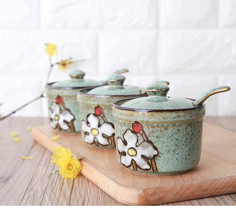 韩式带盖陶瓷调味罐 盐罐糖罐调料瓶 创意调料盒三件套