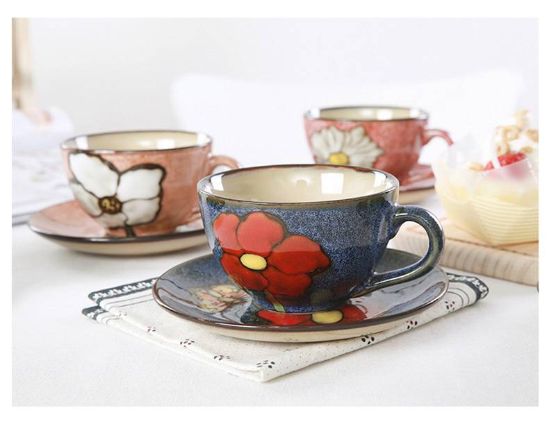 韩式手绘陶瓷咖啡杯套装 欧式简约复古出口水杯子