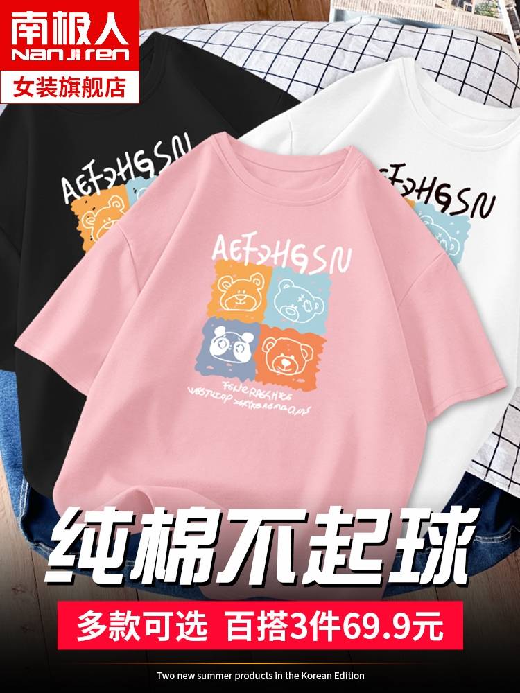 粉色纯棉短袖t恤女夏2023年新款欧货大码宽松半袖上衣设计感ins潮