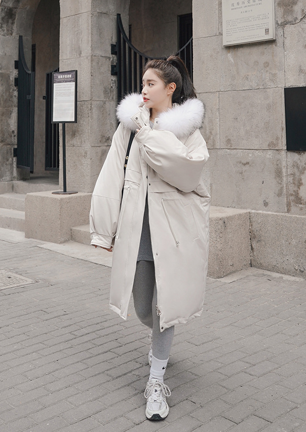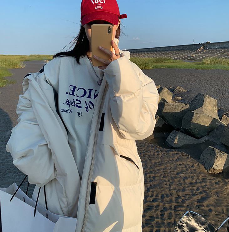 丁丁连帽棉服女2021冬季新款韩版宽松加厚保暖中长款立领棉衣外套