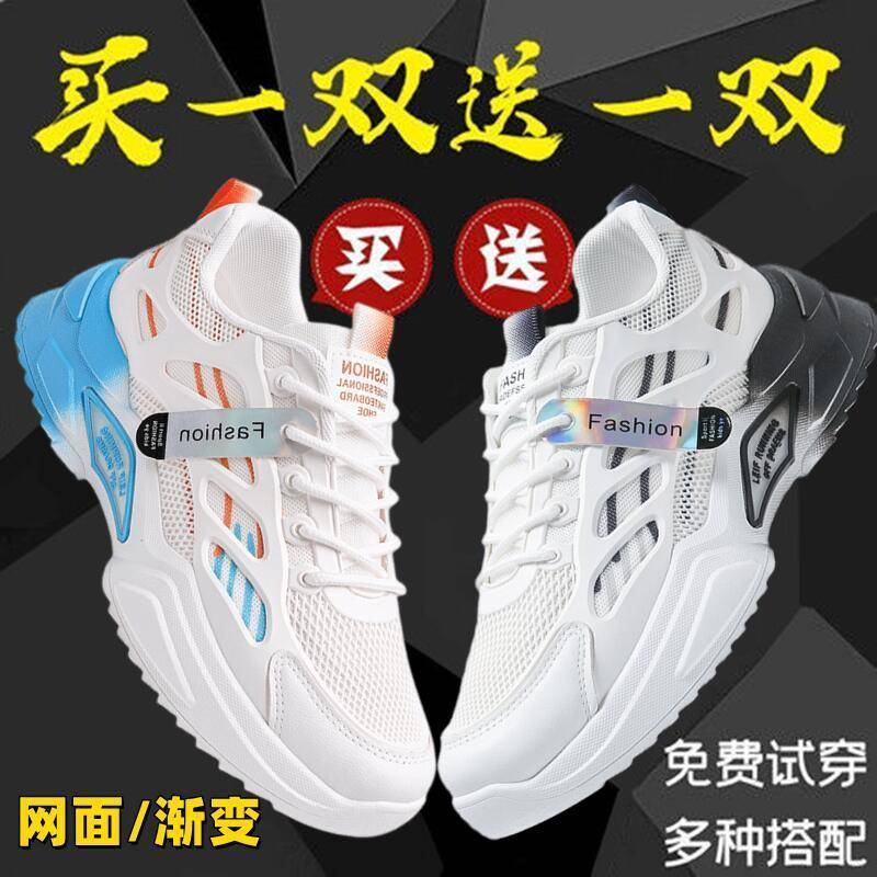 [买一送一]男鞋夏季防臭男运动鞋男中学生透气网面百搭老爷潮鞋