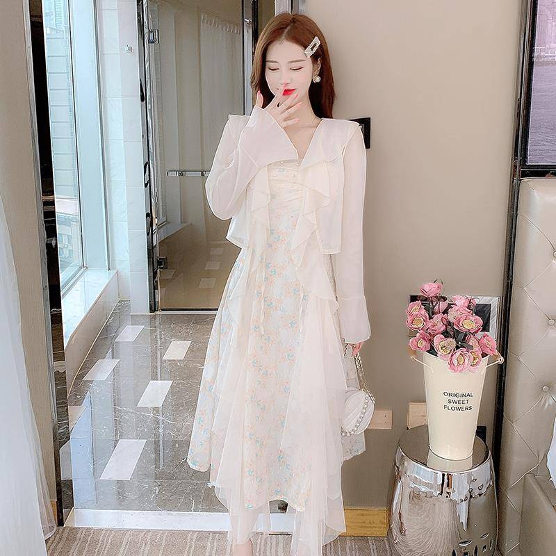 网红碎花连衣裙女装2020新款秋法式小众两件套名媛小香风气质裙