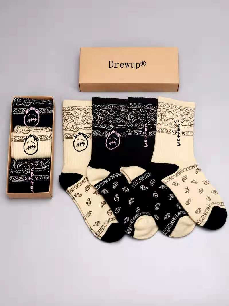 鬼脸厂牌腰果花高邦制定秋冬长袜黑脸图案搭配男女街头潮流运动棉袜