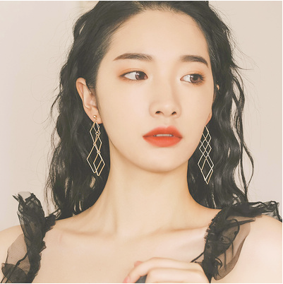 冷淡风几何菱形显脸瘦的耳环女长款气质大气韩国个性潮人百搭耳饰