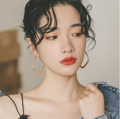 ins冷淡风几何菱形金属耳环气质韩国个性百搭简约耳圈网红耳饰潮