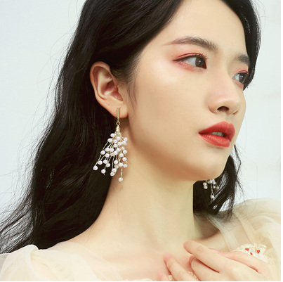 少女心ins超仙耳环女长款气质韩国珍珠流苏吊坠网红耳钉耳饰银针