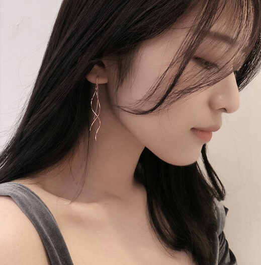 925纯银耳环女气质韩国长款小耳坠个性百搭耳钉冷淡风不对称耳饰