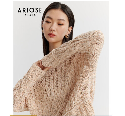 艾诺丝雅诗2022春秋新款宽松立体花式针织衫落肩袖休闲慵懒款