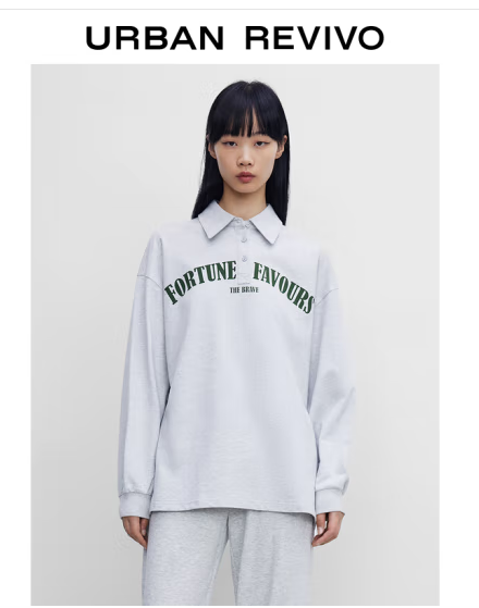 UR2022春季新款女装美式学院印花宽松poloT恤