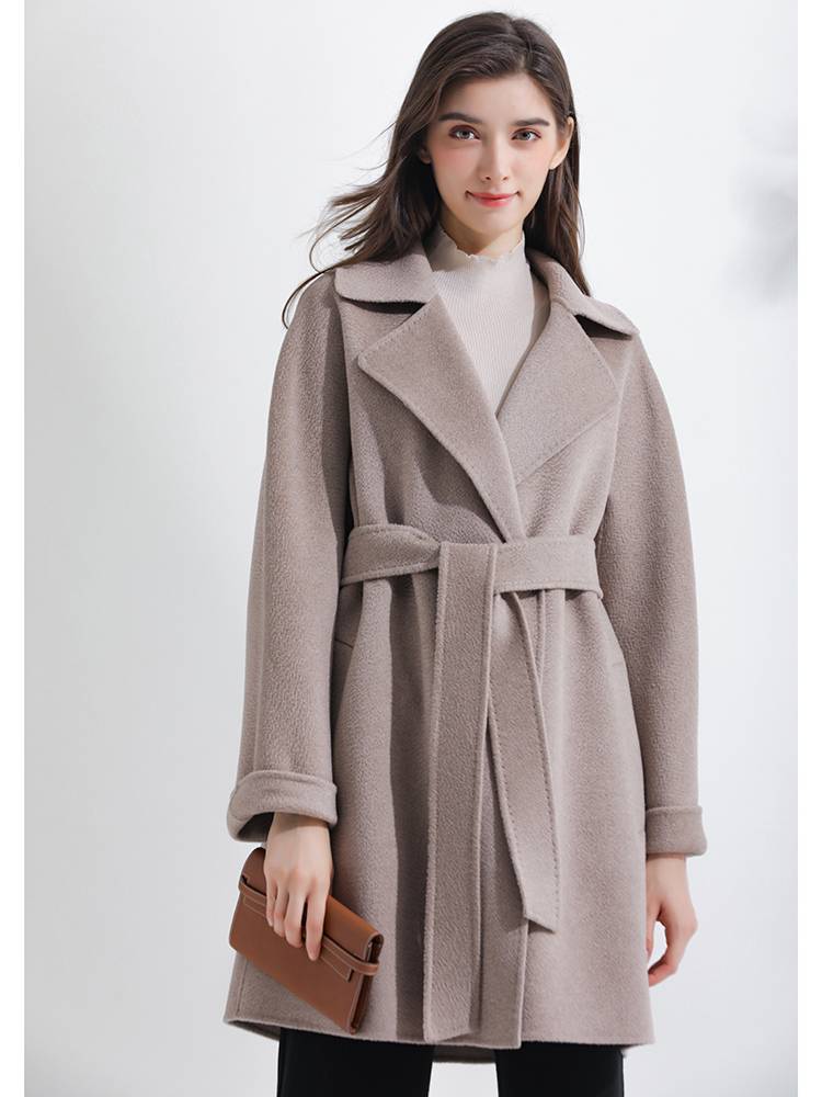 原色双面羊绒大衣女大翻领毛呢外套女短款小个子呢子2020年新款冬